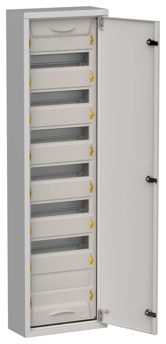 Наименование в каталоге TITAN 5 Корпус металлический ЩРн-84 (1х84) 1085х310х140мм IP31 серый (одна дверь) IEK