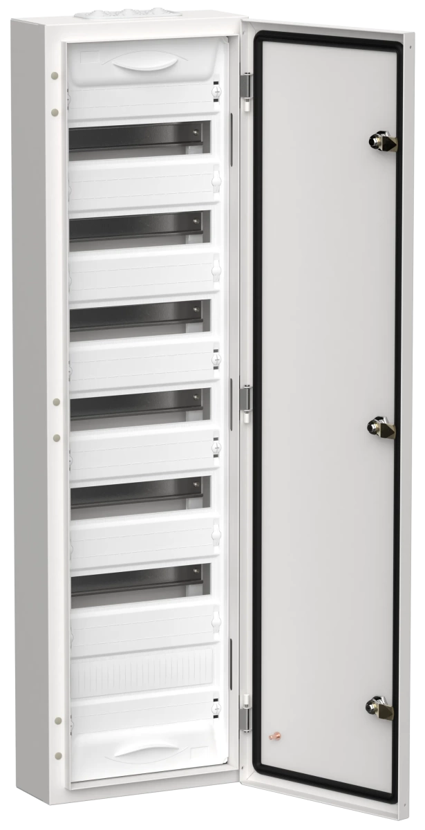 Описание Корпуса распределительные ЩРн TITAN 5 предназначены для сборки распределительных электрощитов с использованием модульной аппаратуры, для ввода и распределения электроэнергии, а также защиты сетей напряжением 230/400В от токов перегрузки и короткого замыкания. Широкий размерный ряд. Модульная ёмкость от 12 до 216 модулей. Высокая степень защиты - IP54. Удобный монтаж - отсутствие перегородки между секциями корпуса, съемная монтажная рама. Увеличенное пространство за DIN-рейками для прокладки кабеля. Возможность пломбировки фальш-панели. Перенавешиваемая дверь. Многофункциональный кабельный ввод. Шины и суппорты в комплекте.