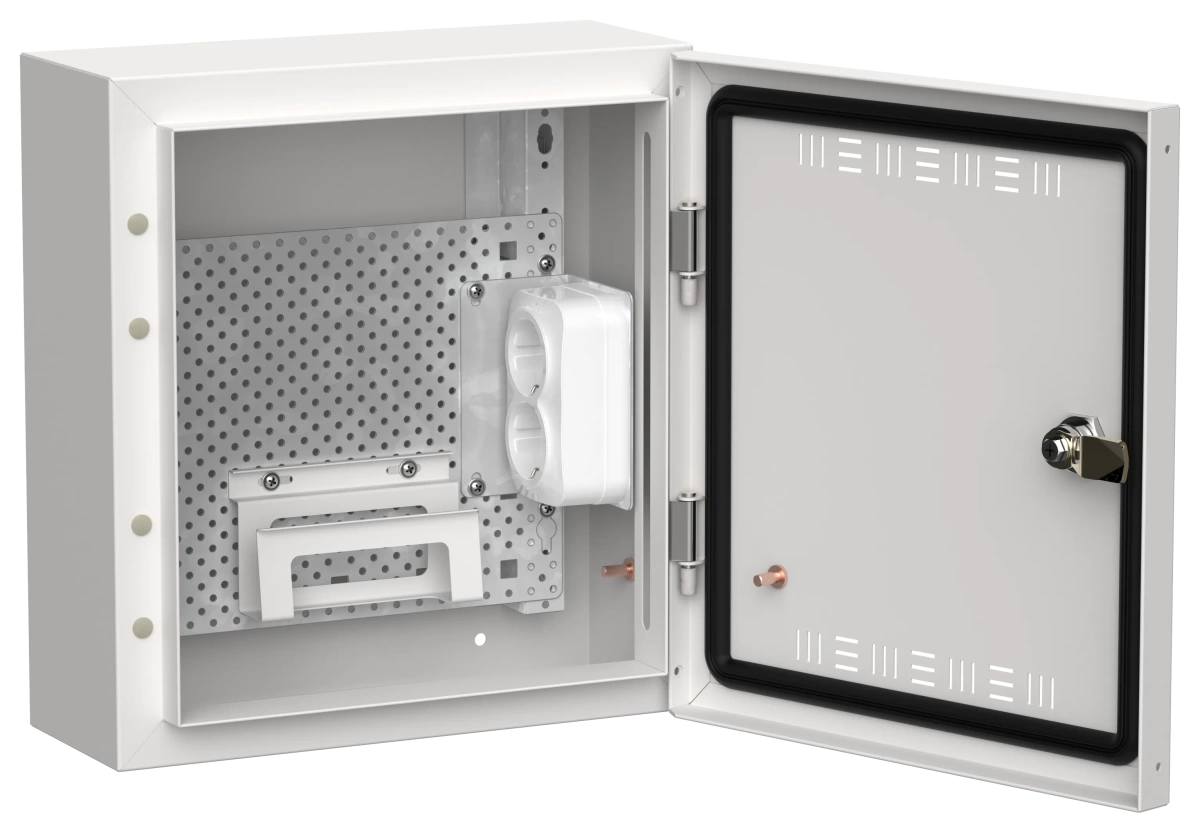 Комплектация комплект для навески - 1 шт.|провод заземления - 1 шт.|знак Заземление - 2 шт.|знак Осторожно! Электрическое напряжение - 1 шт.|наклейка модульная - 1 шт.|комплект метизов для заземления. - 1 комп.|сальник - 1 шт.|карман для роутера - 1 шт.|розетка 2-ух поставая с держателем - 1 шт.|монтажная плата перфорированная - 1 шт.