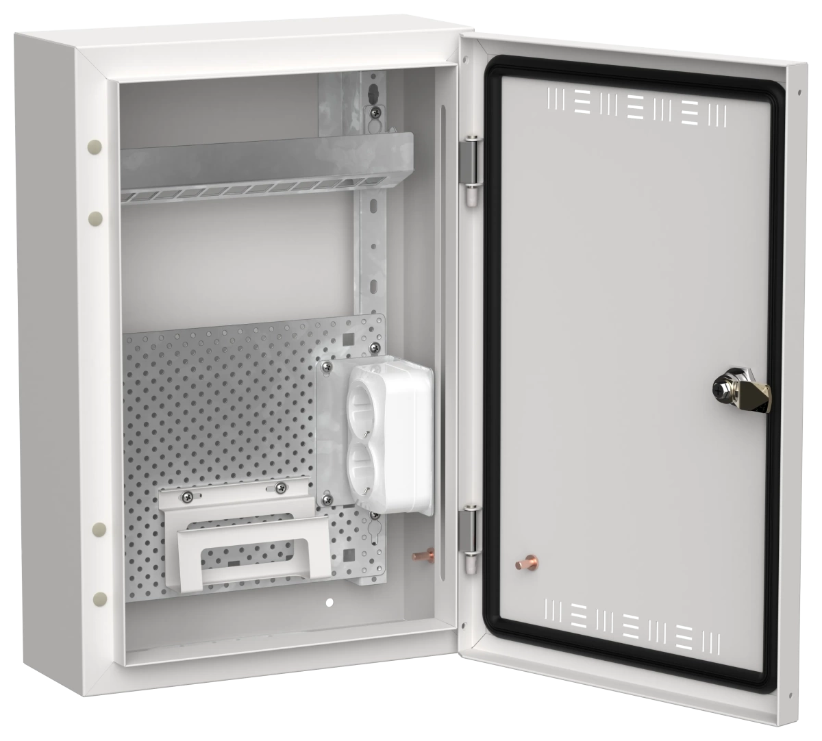Комплектация комплект для навески - 1 шт.|провод заземления - 1 шт.|знак Заземление - 2 шт.|знак Осторожно! Электрическое напряжение - 1 шт.|наклейка модульная - 1 шт.|комплект метизов для заземления. - 1 комп.|сальник - 1 шт.|карман для роутера - 1 шт.|розетка 2-ух поставая с держателем - 1 шт.|монтажная плата перфорированная - 1 шт.