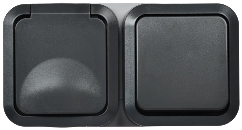 Наименование в каталоге Блок розетка + выключатель горизонтальный TORS 16А IP55 графит