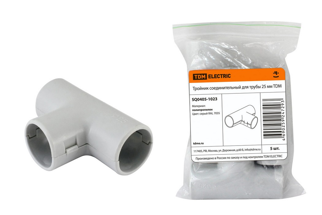 Тройник соединительный для трубы 25 мм (5шт) TDM ELECTRIC SQ0405-1023