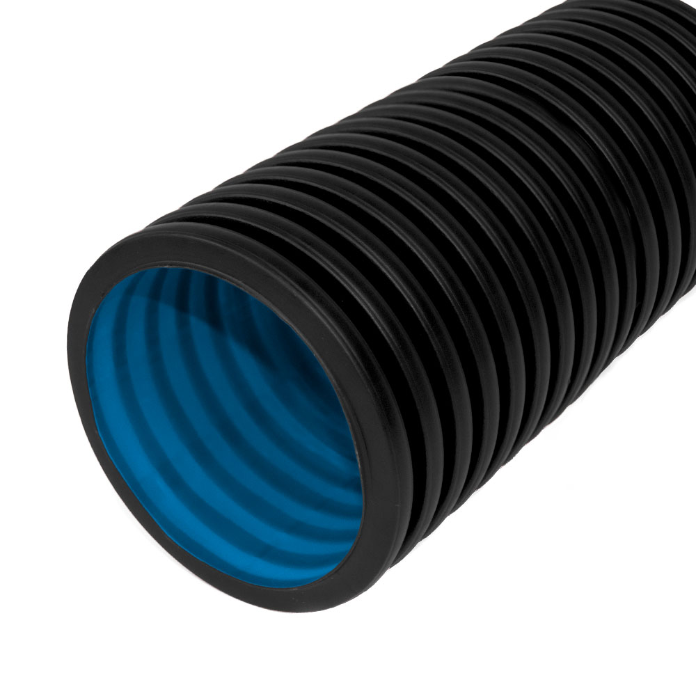 Труба гофрированная двустенная ПНД жесткая тип 450 (SN10) стойкая к ультрафиолету не распространяющая горение черная д125 6м (36м/уп) Промрукав