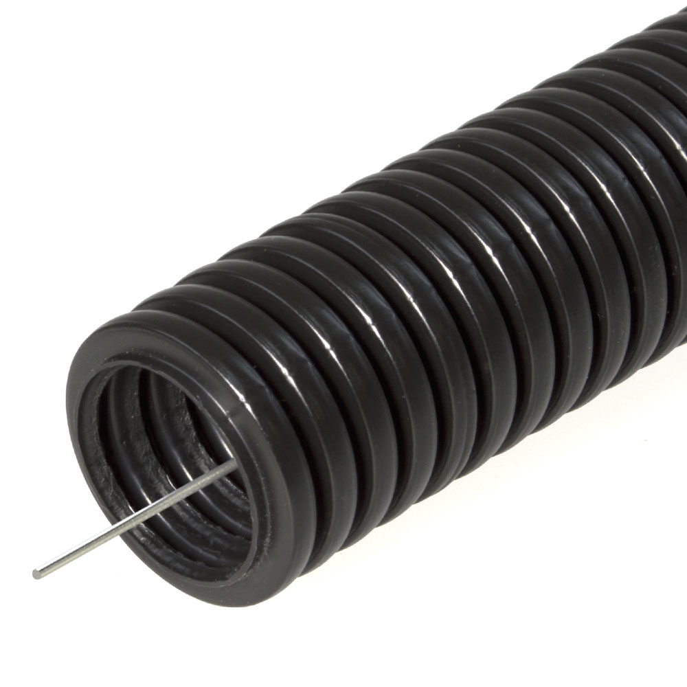 Описание Гофрированные трубы из полиэтилена низкого давления отлично подходят для защиты изолированных проводов и кабелей от механических повреждений и агрессивного воздействия окружающей среды при прокладке сложных систем и трасс. Применяются для скрытой и открытой прокладки в несущих и ограждающих конструкциях из несгораемых материалов жилых, административных и производственных зданий и сооружений. Тип - строительная. Исполнение - безгалогенная (HF). Протяжка (зонд) - стальная проволока. Цветовое исполнение - RAL 9005 (черный).