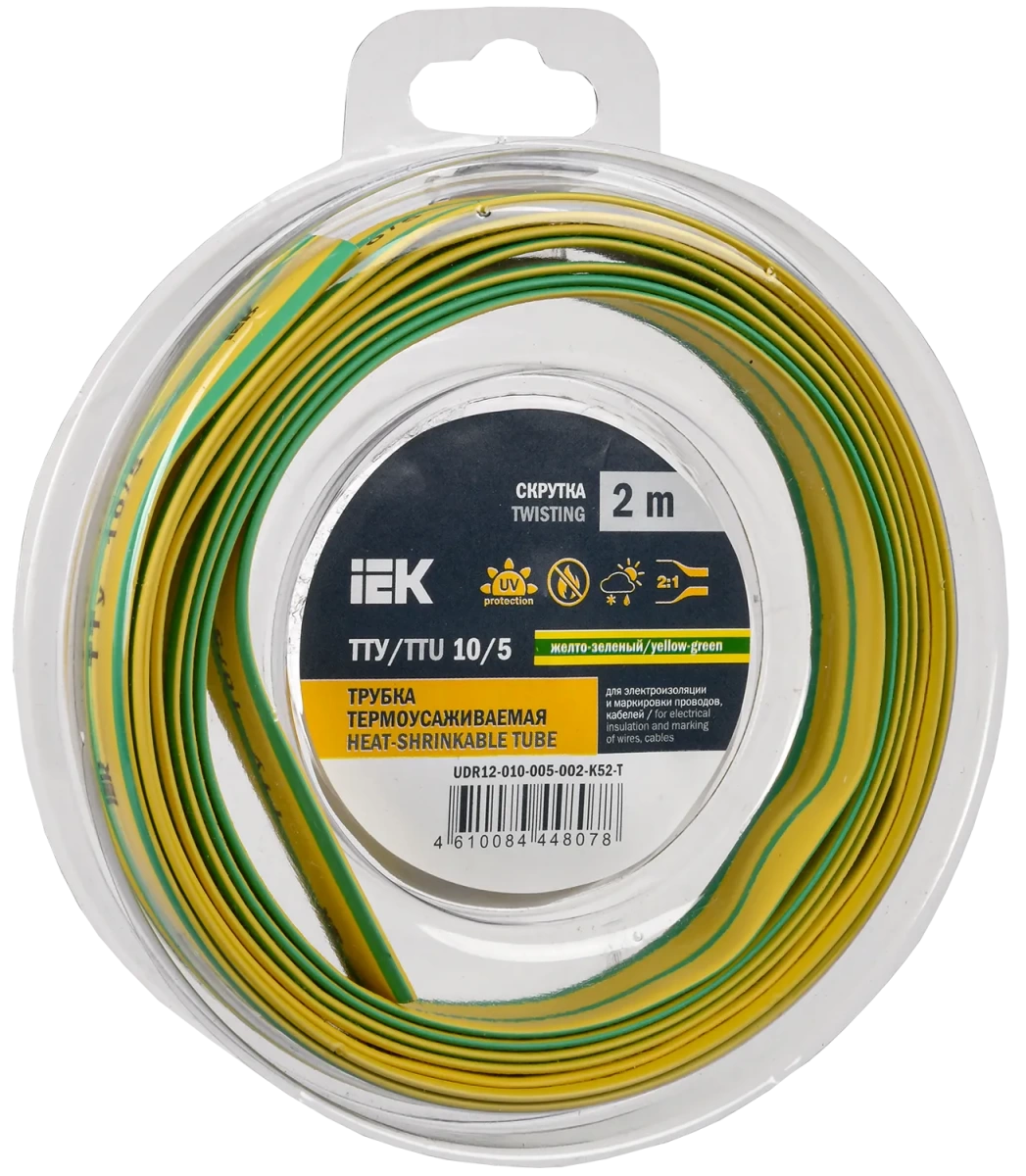 Трубка термоусадочная ТТУ нг-LS 10/5 желто-зеленая (2м/упак) IEK IEK (ИЭК) UDR12-010-005-002-K52-T