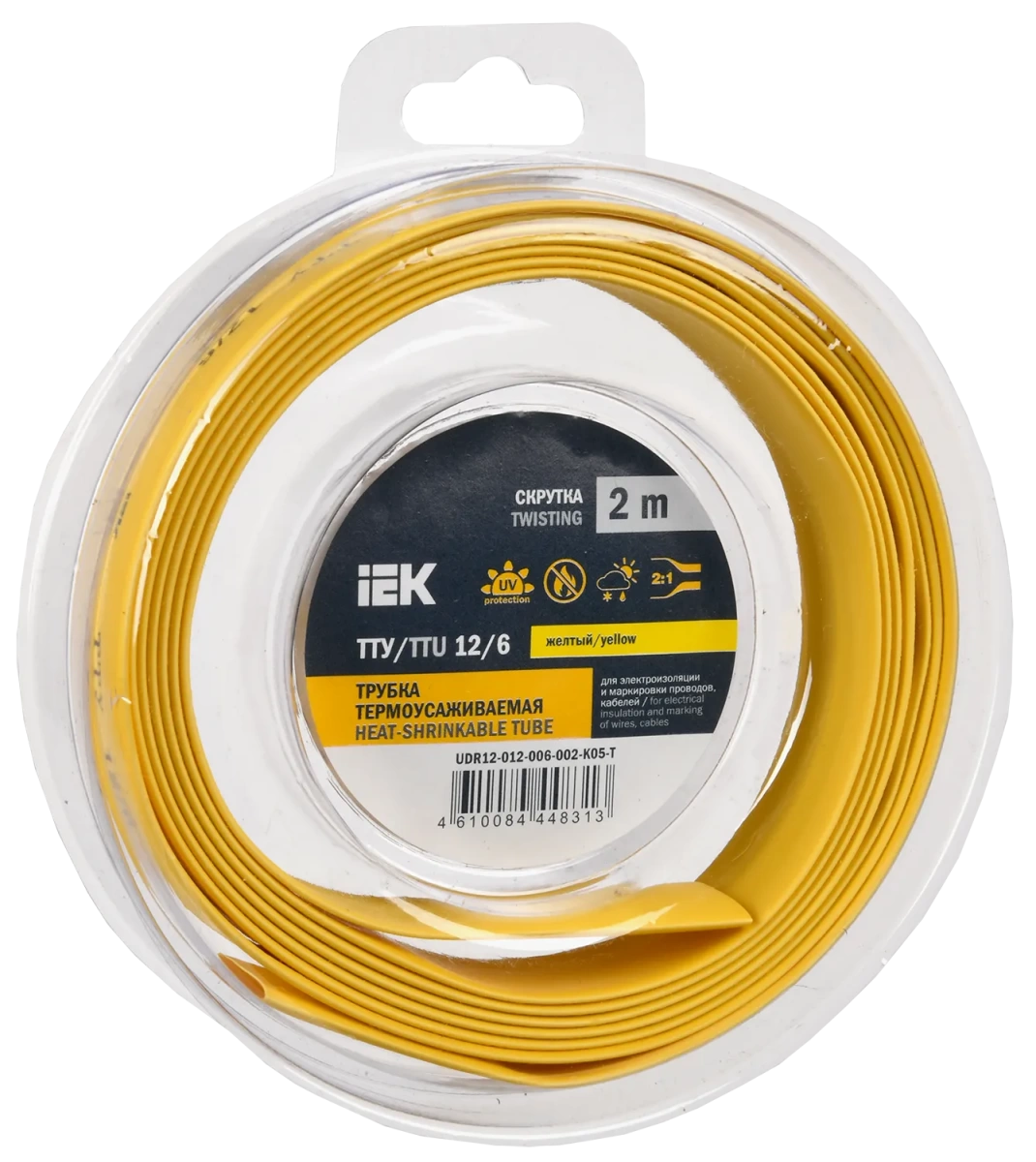 Полные технические характеристики Трубка термоусадочная ТТУ нг-LS 12/6 желтая (2м/упак) IEK IEK (ИЭК) UDR12-012-006-002-K05-T