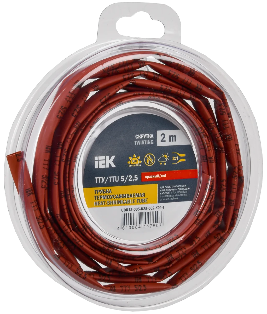 Полные технические характеристики Трубка термоусадочная ТТУ нг-LS 5/2,5 красная (2м/упак) IEK IEK (ИЭК) UDR12-005-D25-002-K04-T