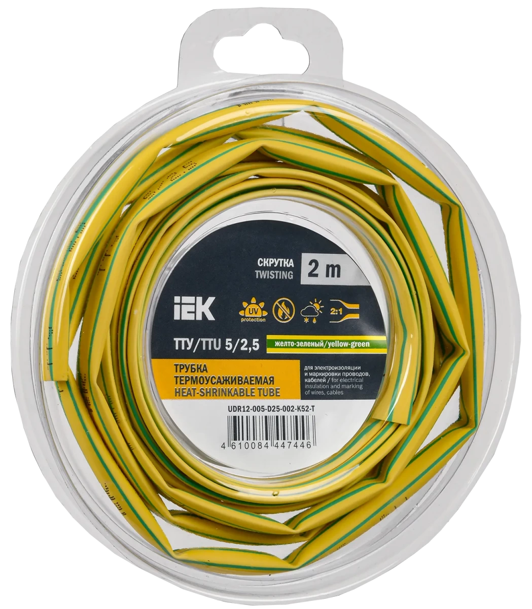 Трубка термоусадочная ТТУ нг-LS 5/2,5 желто-зеленая (2м/упак) IEK IEK (ИЭК) UDR12-005-D25-002-K52-T
