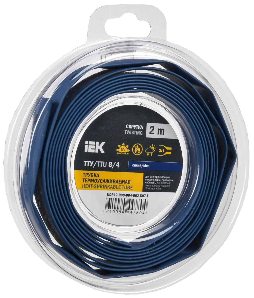 Полные технические характеристики Трубка термоусадочная ТТУ нг-LS 8/4 синяя (2м/упак) IEK IEK (ИЭК) UDR12-008-004-002-K07-T