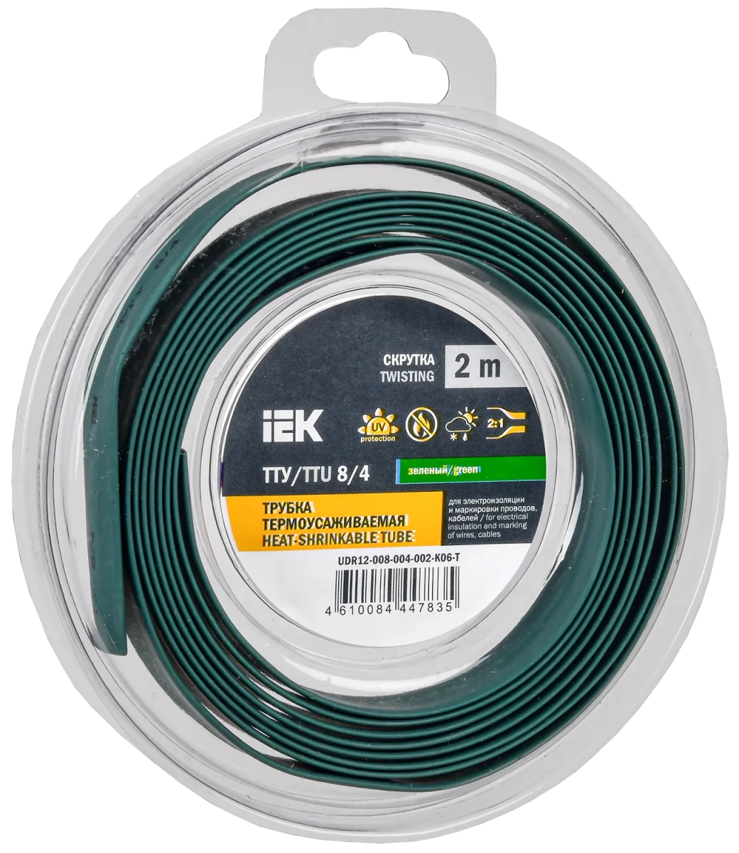 Полные технические характеристики Трубка термоусадочная ТТУ нг-LS 8/4 зеленая (2м/упак) IEK IEK (ИЭК) UDR12-008-004-002-K06-T