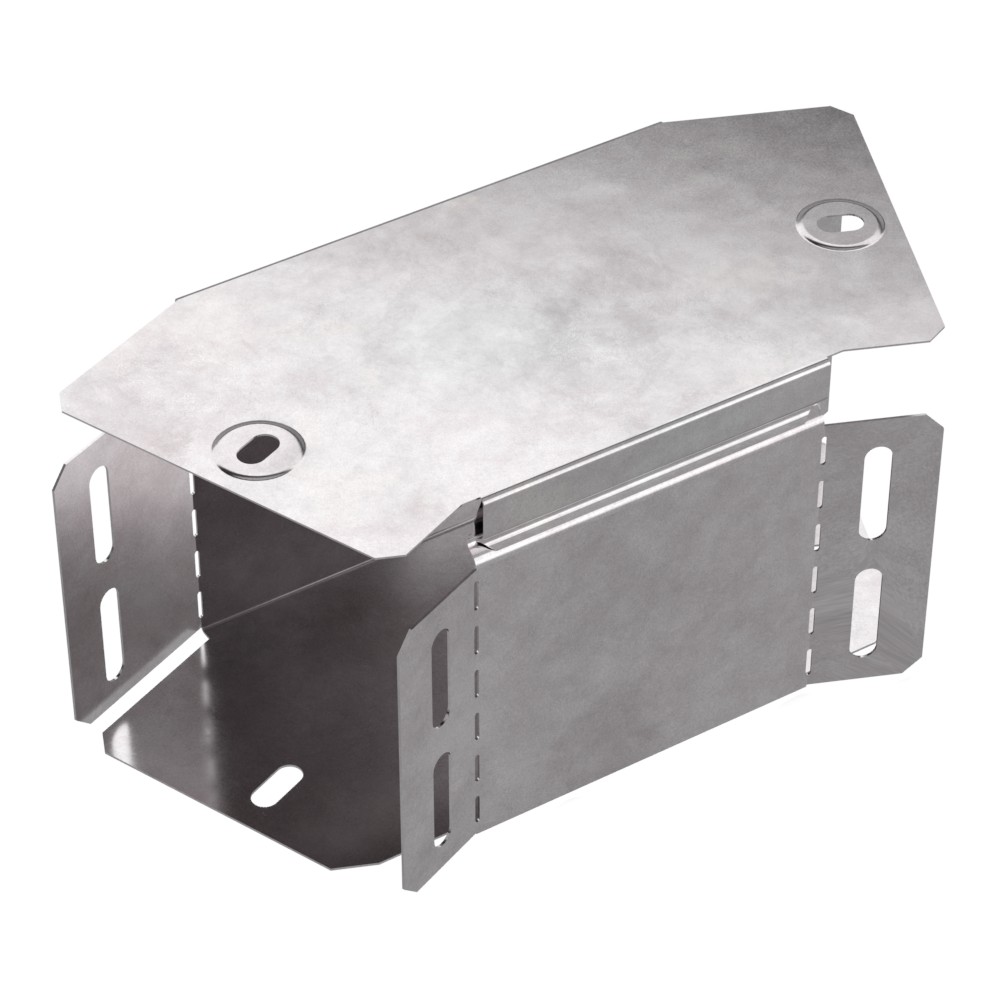 Описание Аксессуары, изготовленные из стали с защитным покрытием по методу Сендзимира – это изделия, на которых защитное цинковое покрытие было нанесено на листовую сталь перед изготовлением. Толщина защитного покрытия варьируется от 10 до 22мкм. Климатическое исполнение изделий УХЛ2, что предусматривают эксплуатацию в помещении и под навесом, при температуре эксплуатации от -80 до +150С. Угол горизонтальный 45 градусов предназначен для поворота кабельных трасс в горизонтальном направлении на 45 градусов, для перфорированных и глухих лотков. В комплект входит крышка.