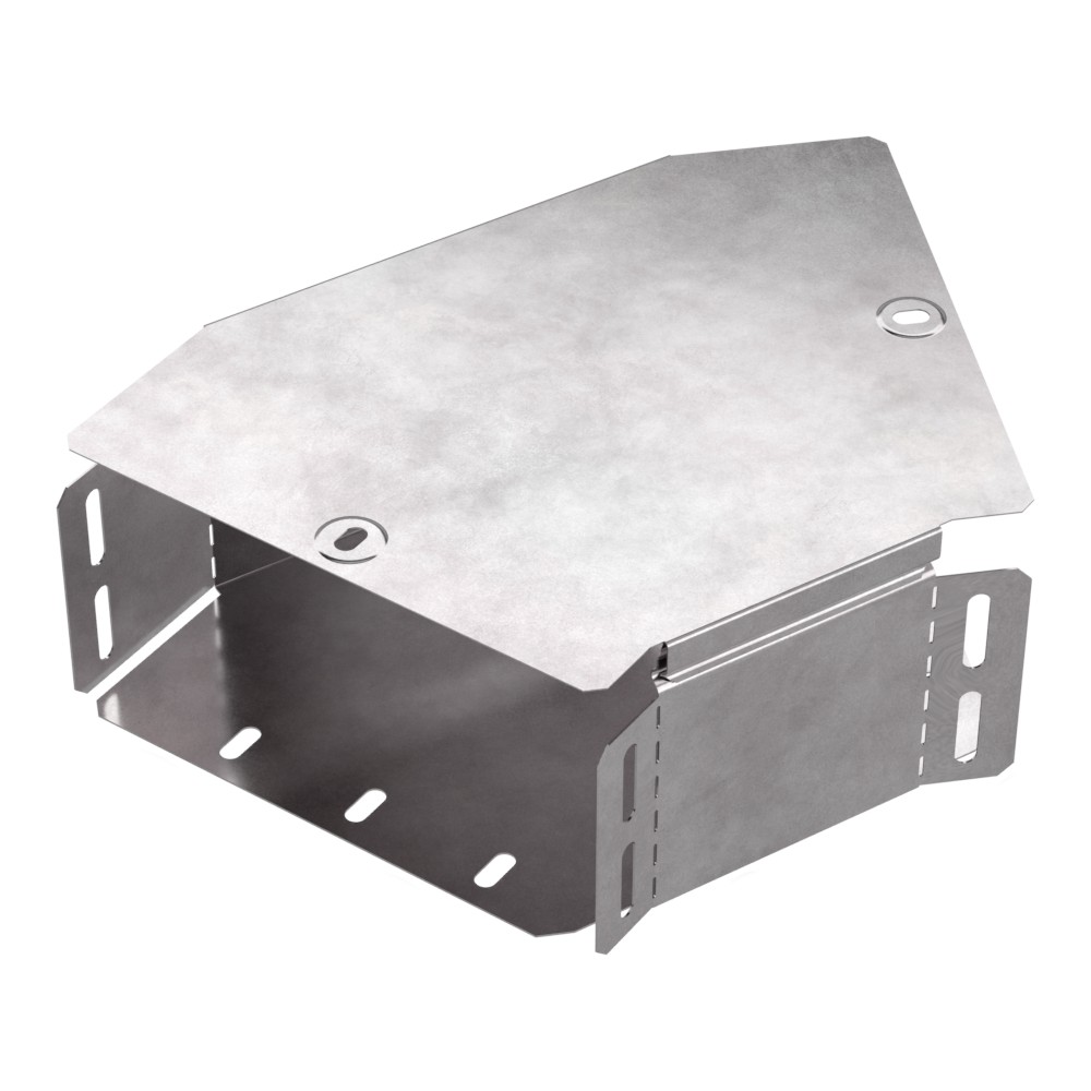 Описание Аксессуары изготовленные из стали с защитным покрытием по методу Сендзимира - это изделия, на которых защитное цинковое покрытие было нанесено на листовую сталь перед изготовлением. Толщина защитного покрытия варьируется от 10 до 22мкм. Климатическое исполнение изделий УХЛ2, что предусматривают эксплуатацию в помещении и под навесом, при температуре эксплуатации от -80 до +150 градусов С. Угол горизонтальный 45 градусов предназначен для поворота кабельных трасс в горизонтальном направлении на 45 градусов, для перфорированных и глухих лотков. В комплект входит крышка.