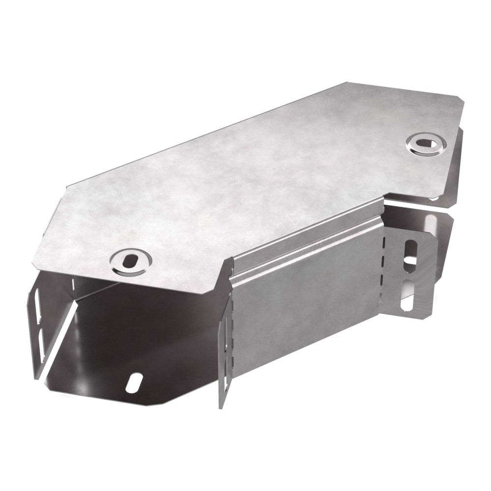 Описание Аксессуары изготовленные из стали с защитным покрытием по методу Сендзимира - это изделия, на которых защитное цинковое покрытие было нанесено на листовую сталь перед изготовлением. Толщина защитного покрытия варьируется от 10 до 22мкм. Климатическое исполнение изделий УХЛ2, что предусматривают эксплуатацию в помещении и под навесом, при температуре эксплуатации от -80 до +150С. Угол горизонтальный 90 градусов предназначен для поворота кабельных трасс в горизонтальном направлении на 90 градусов, для перфорированных и глухих лотков. В комплект входит крышка.