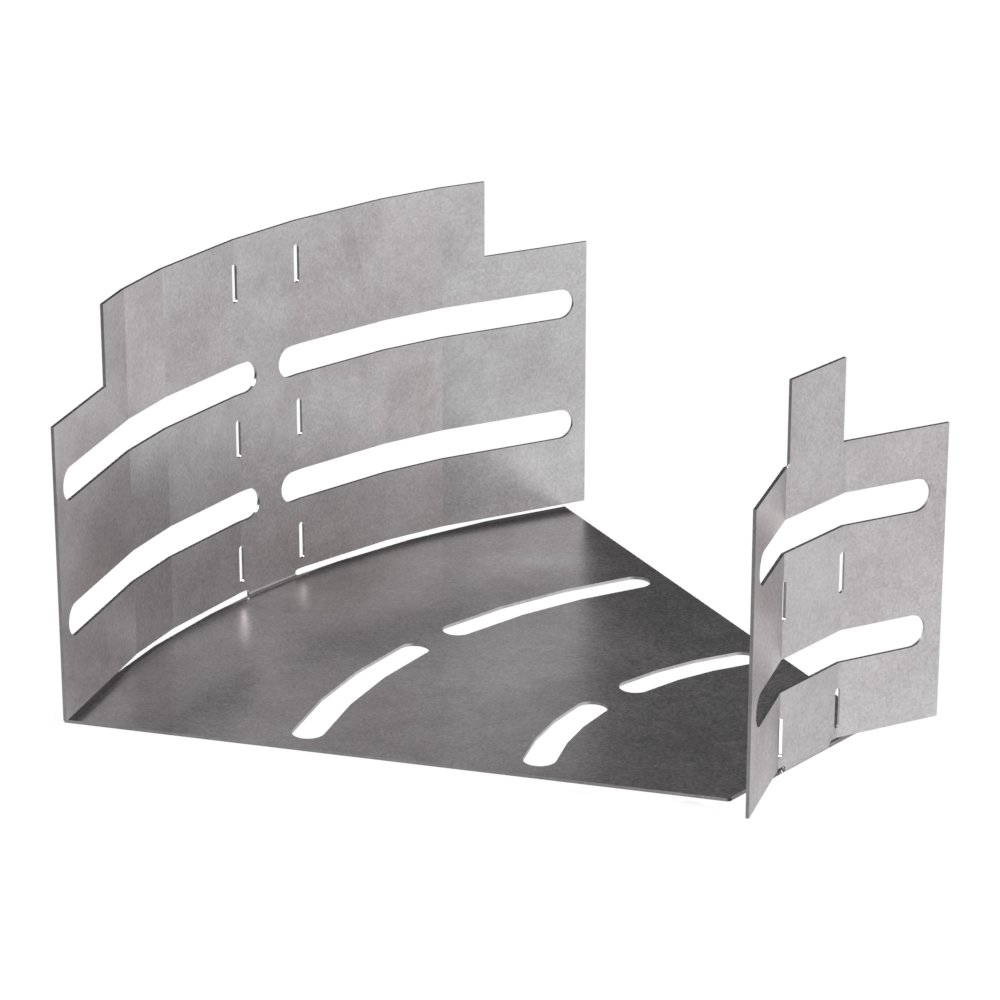 Описание Аксессуары, изготовленные из стали с защитным покрытием по методу Сендзимира – это изделия, на которых защитное цинковое покрытие было нанесено на листовую сталь перед изготовлением. Толщина защитного покрытия варьируется от 10 до 22мкм. Климатическое исполнение изделий УХЛ2, что предусматривают эксплуатацию в помещении и под навесом, при температуре эксплуатации от -80 до +150С. Обеспечивает плавный переход горизонтальной кабеленесущей линии между лотками металлическими в диапазоне от 0 до 45 градусов.