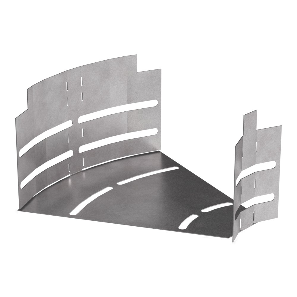 Описание Аксессуары изготовленные из стали с защитным покрытием по методу Сендзимира – это изделия, на которых защитное цинковое покрытие было нанесено на листовую сталь перед изготовлением. Толщина защитного покрытия варьируется от 10 до 22мкм. Климатическое исполнение изделий УХЛ2, что предусматривают эксплуатацию в помещении и под навесом, при температуре эксплуатации от -80 до +150С. Обеспечивает плавный переход горизонтальной кабеленесущей линии между лотками металлическими в диапазоне от 0 до 45 градусов.