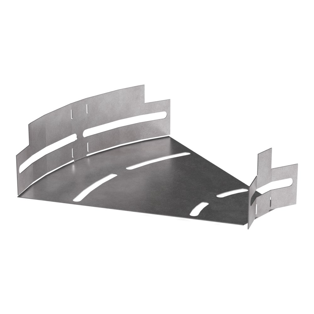 Описание Аксессуары изготовленные из стали с защитным покрытием по методу Сендзимира – это изделия, на которых защитное цинковое покрытие было нанесено на листовую сталь перед изготовлением. Толщина защитного покрытия варьируется от 10 до 22мкм. Климатическое исполнение изделий УХЛ2, что предусматривают эксплуатацию в помещении и под навесом, при температуре эксплуатации от -80 до +150С. Обеспечивает плавный переход горизонтальной кабеленесущей линии между лотками металлическими в диапазоне от 0 до 45 градусов.