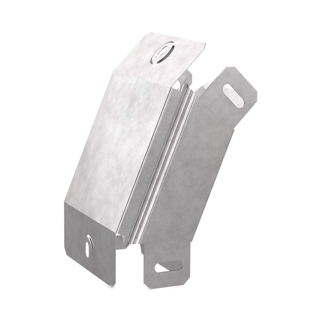 Описание Аксессуары изготовленные из стали с защитным покрытием по методу Сендзимира – это изделия, на которых защитное цинковое покрытие было нанесено на листовую сталь перед изготовлением. Толщина защитного покрытия варьируется от 10 до 22мкм. Климатическое исполнение изделий УХЛ2, что предусматривают эксплуатацию в помещении и под навесом, при температуре эксплуатации от -80 до +150°С. Угол вертикальный внешний 45 градусов предназначен для спуска кабельных трасс на 45 градусов, для перфорированных и глухих лотков. В комплект входит крышка.