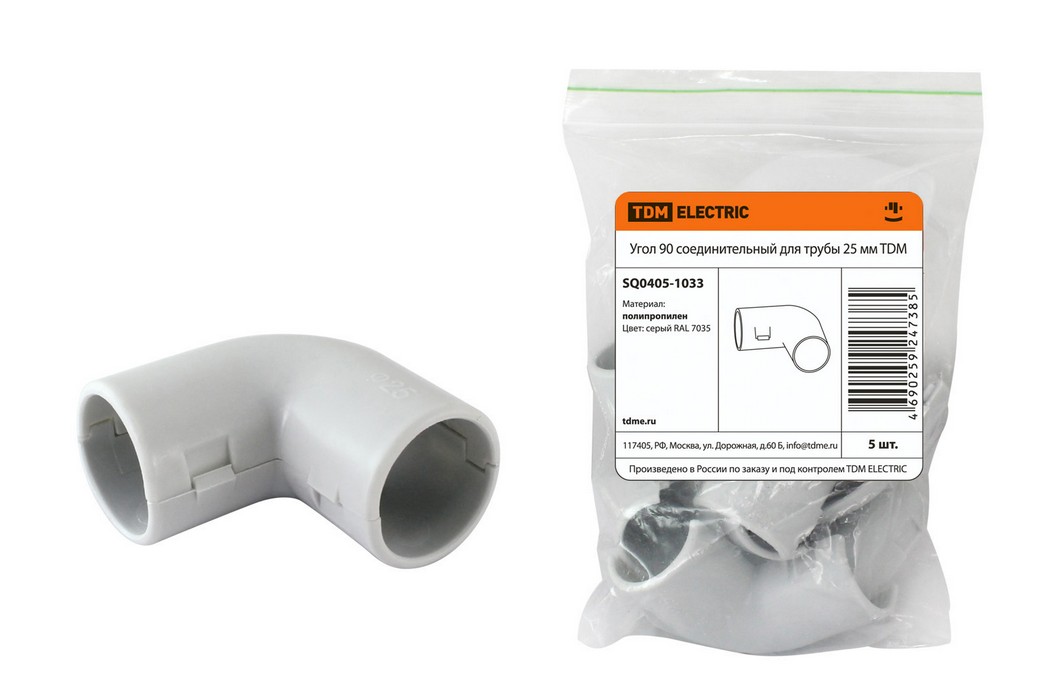 Угол 90 соединительный для трубы 25 мм (5шт) TDM ELECTRIC SQ0405-1033
