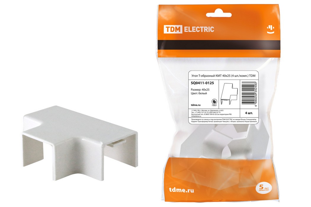 Полные технические характеристики Угол Т-образный КМТ 40x25 (4 шт/комп) TDM ELECTRIC SQ0411-0125