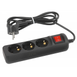 UX-3es-1,5m-B  Удлинитель электрический ЭРА UX-3es-1,5m-B с заземлением с выключателем 3 розетки 1,5 м ПВС 3x0,75мм2 черный