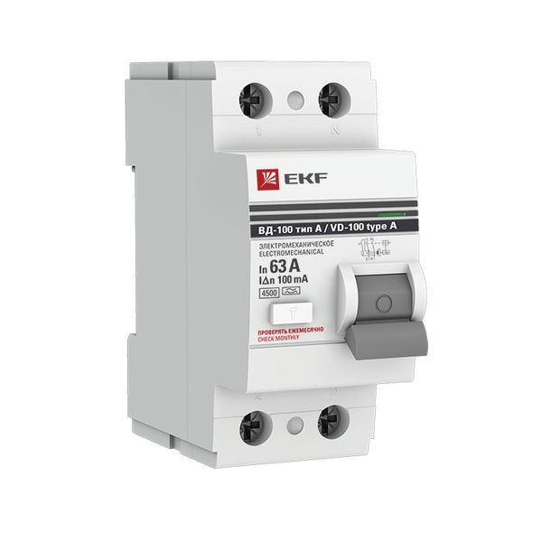 Устройство защитного отключения ВД-100 2P 63А/100мА электромеханический тип A PROxima EKF elcb-2-63-100-em-a-pro