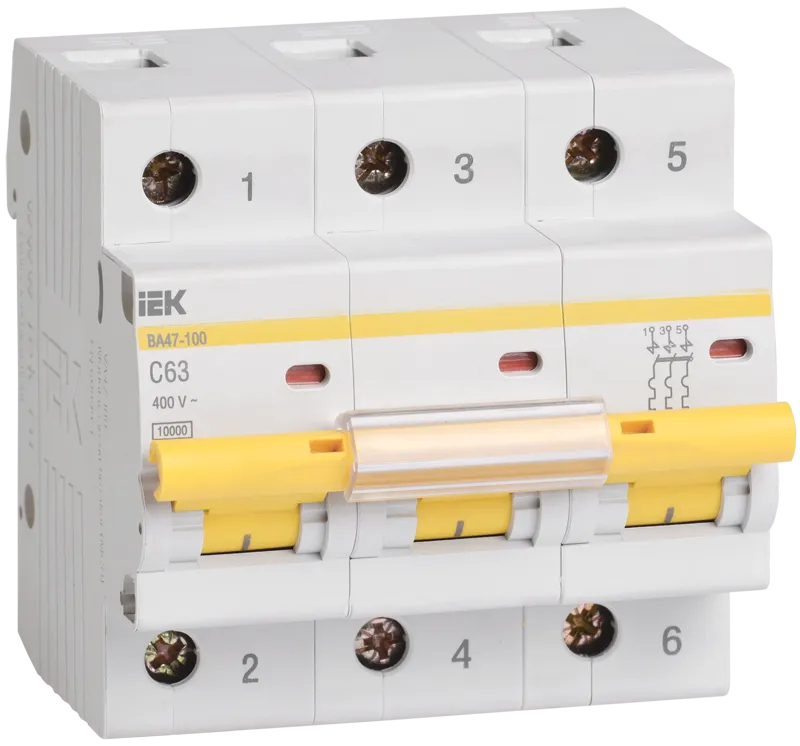 Выключатель автоматический трехполюсный 63А С ВА47-100 10кА IEK (ИЭК) MVA40-3-063-C