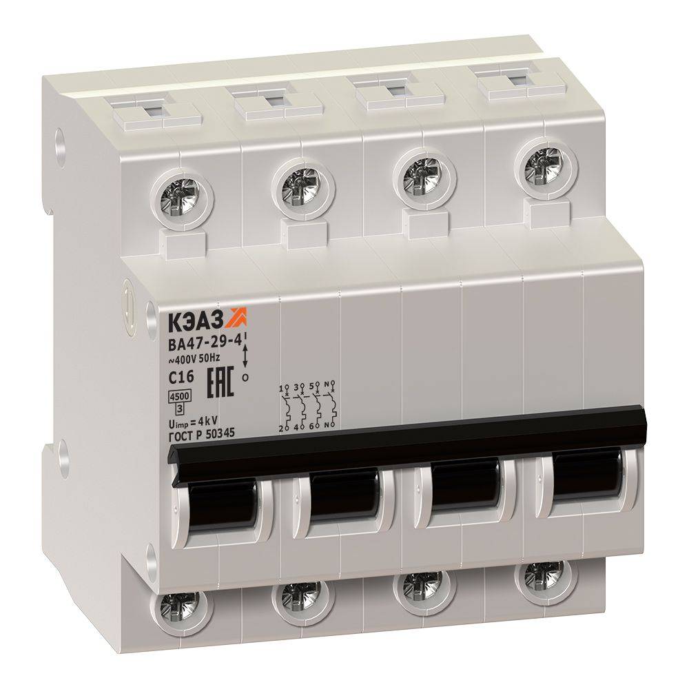 Выключатель автоматический четырехполюсный 6А C ВА47-29-4C6-УХЛ3- КЭАЗ 231633