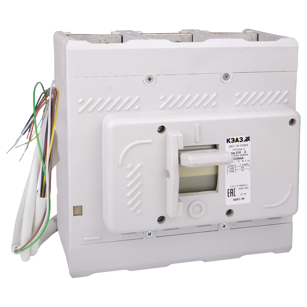 Описание Силовой 3 полюсный автоматический выключатель переменного тока в литом корпусе на номинальный ток 400 А. Трехполюсные автоматические выключатели КЭАЗ типа ВА 51-39 предназначены для применения в электрических цепях с напряжением 400 / 690 В переменного тока частотой 50 и 60 Гц и 440В постоянного тока, их защиты от токов короткого замыкания, токов перегрузки, недопустимых снижений напряжения, а также для нечастых оперативных включений и отключений.