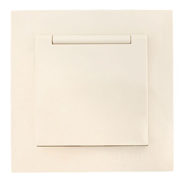 Валенсия розетка 1-местная с/з 16А кремова с крышкой и защ. штор. EKF EWV10-124-20