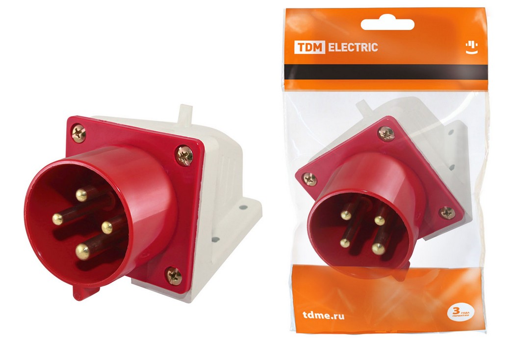 Вилка 514 стационарная 3Р+РЕ 16А 380В IP44 TDM ELECTRIC SQ0605-0012