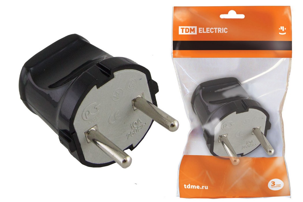 Полные технические характеристики Вилка без заземления черная 6А 250В TDM ELECTRIC SQ1806-0002