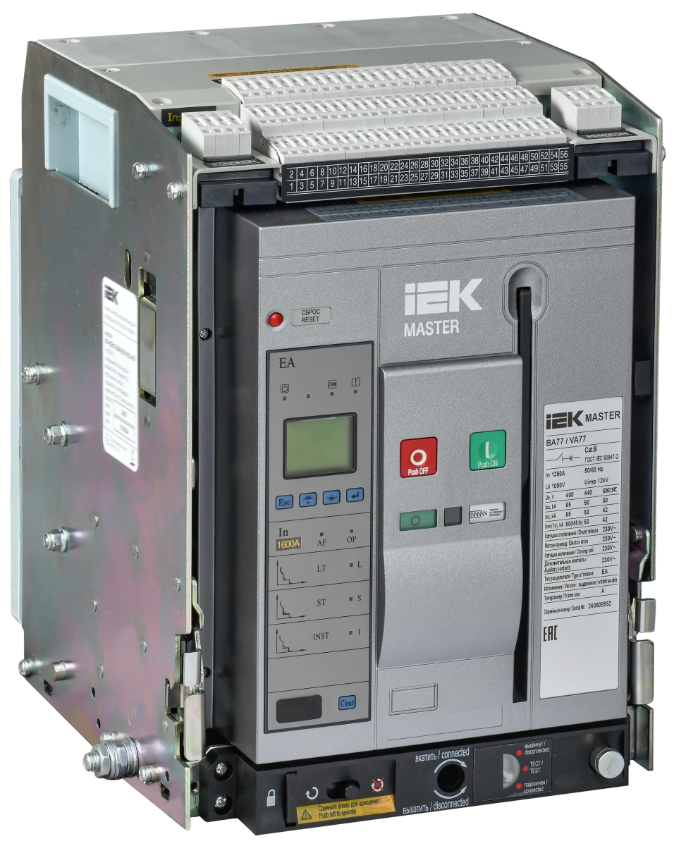 Выключатель автоматический воздушный переменного тока ВА77 выдвижного исполнения 3 полюса типоразмер A 65кА 1250А EA IEK (ИЭК) MI-ACB10-3WA-065-1250-ACF