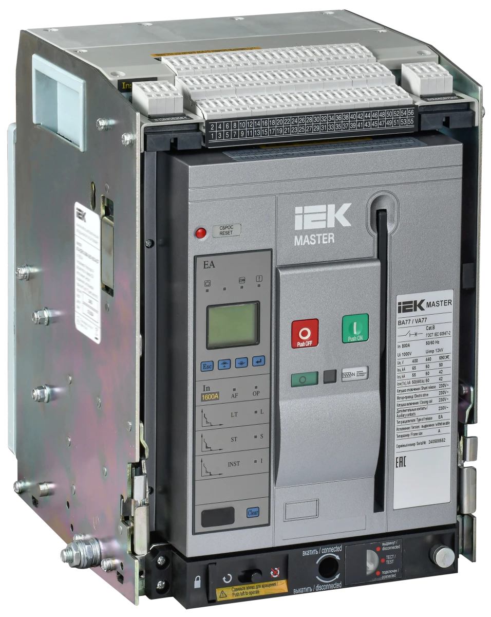 Выключатель автоматический воздушный переменного тока ВА77 выдвижного исполнения 3 полюса типоразмер A 65кА 800А EA IEK (ИЭК) MI-ACB10-3WA-065-0800-ACF