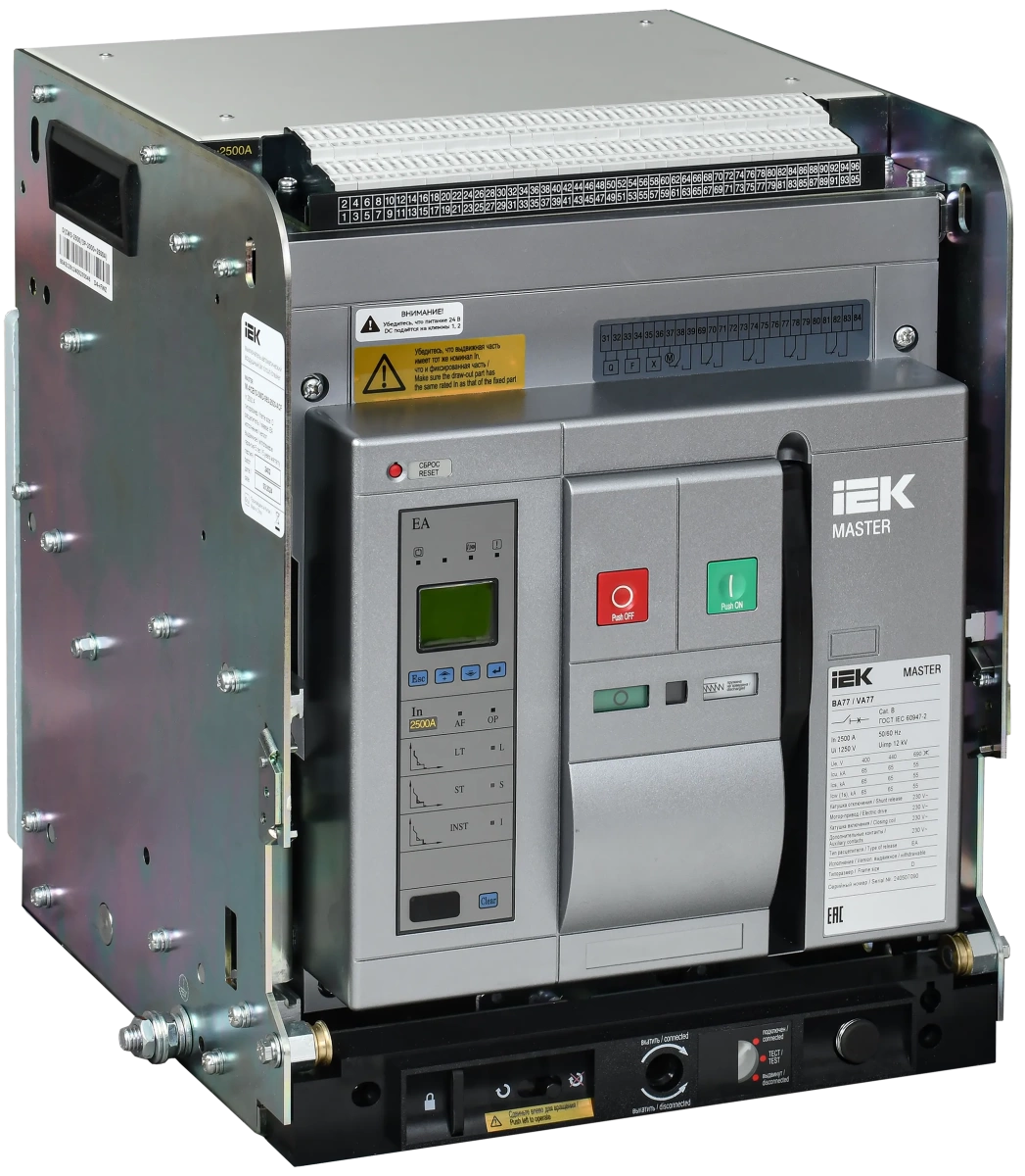 Выключатель автоматический воздушный переменного тока ВА77 выдвижного исполнения 3 полюса типоразмер D 65кА 2500А EA IEK (ИЭК) MI-ACB10-3WD-065-2500-ACF