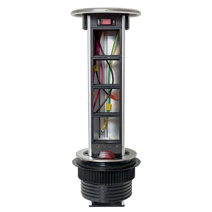Описание Встраиваемая мини-колонна, 8 модулей C-Line. Встраиваемая мини-колонна – это изделие цилиндрической формы с ручным выдвижным механизмом, предназначенное для установки ЭУИ стандарта 45х45. Изделие поставляется в комплекте с сетевым кабелем питания (2 метра). В нижней крышке колонны предусмотрены 2 дополнительных кабельных ввода. Монтаж производится в предварительно подготовленное отверстие диаметром ?95-100 мм. Допустимая толщина поверхности стола 10-45 мм.