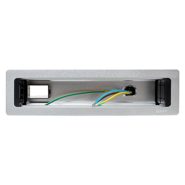 Описание Встраиваемый настольный розеточный блок, 10 модулей, C-Line. Настольный розеточный блок – изделие прямоугольной формы, предназначенное для размещения ЭУИ на уровне поверхности стола. Розеточный блок монтируется в предварительно подготовленное отверстие 241х62 для 10 модулей. Сетевой кабель питания (2 метра) и крепеж в комплекте. На задней стенке розеточного блока предусмотрено дополнительное отверстие для подведения слаботочных кабельных линий.