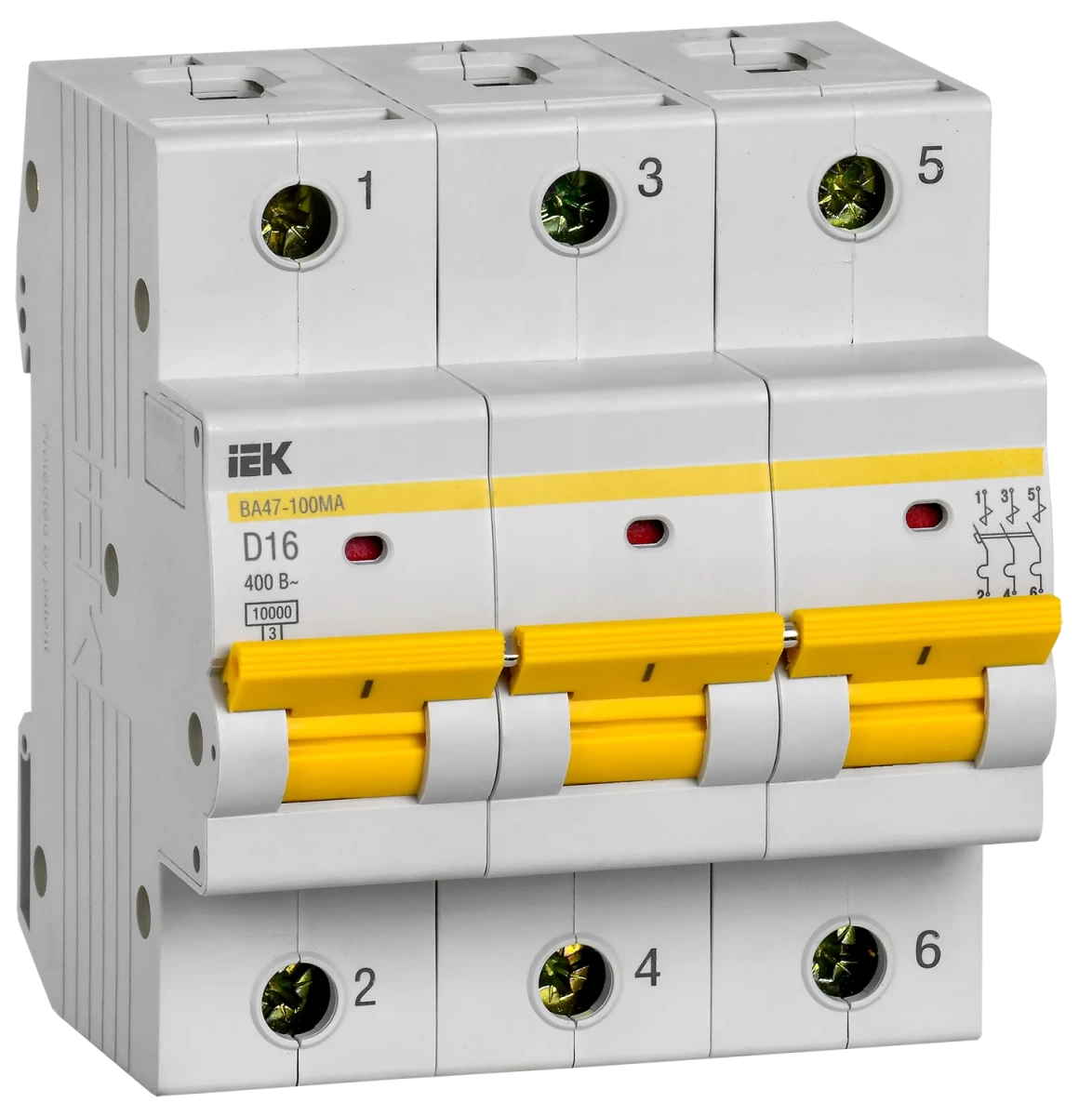 Автоматический выключатель 3п 16А 10кА D ВА47-100МА без теплового расцепителя IEK (ИЭК) MVA43-3-016-D