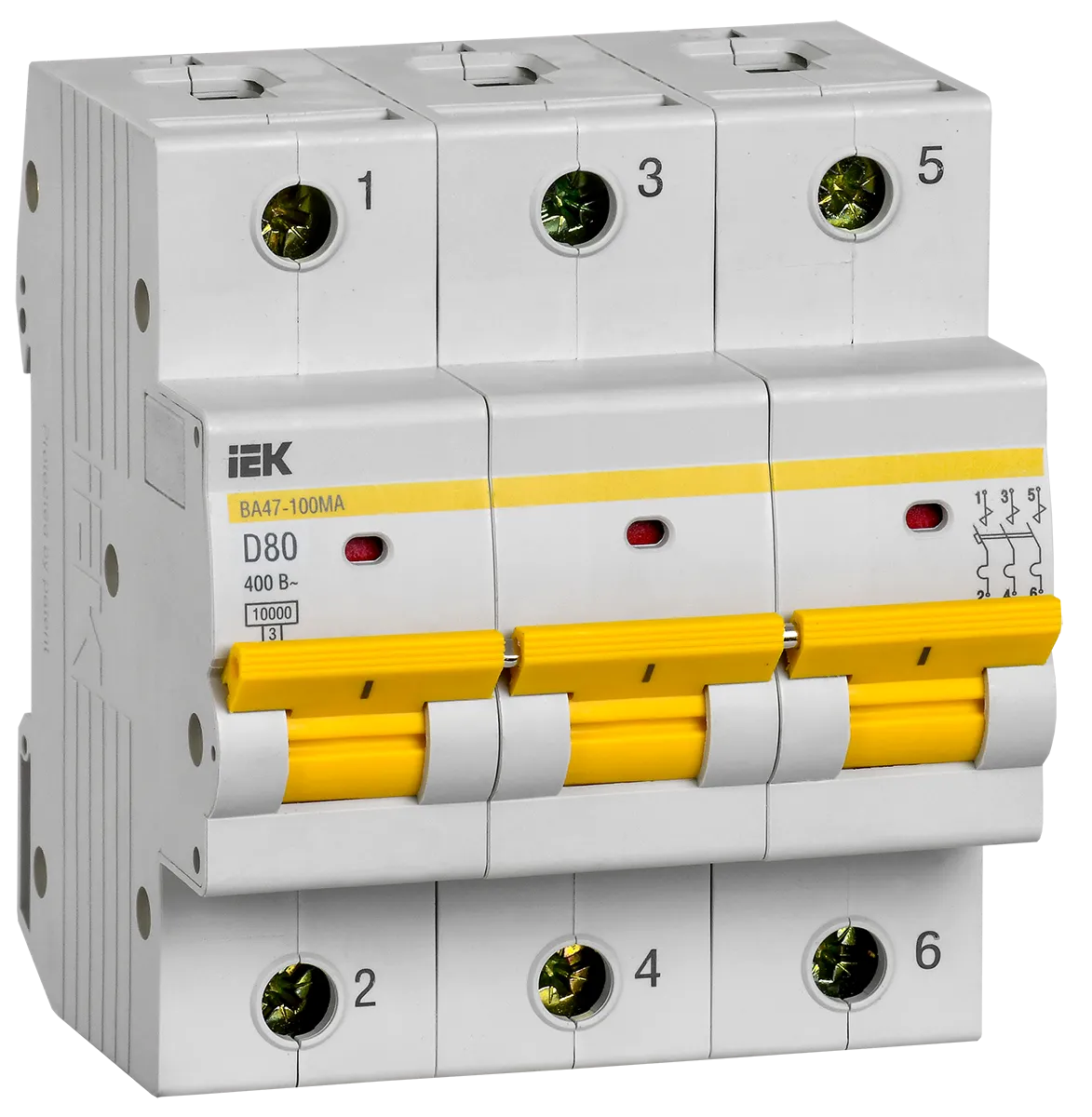 Автоматический выключатель ВА47-100МА без теплового расцепителя 3P 80А 10кА D IEK (ИЭК) MVA43-3-080-D