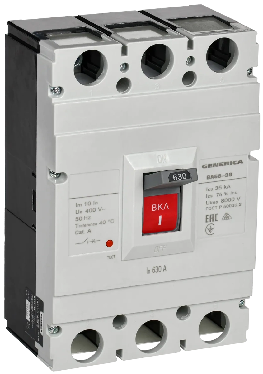 Наименование в каталоге Выключатель автоматический ВА66-39 3Р 630А 35кА GENERICA