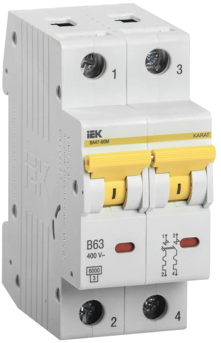 Выключатель автоматический ВА47-60M 2Р 63А 6кА B IEK (ИЭК) MVA31-2-063-B