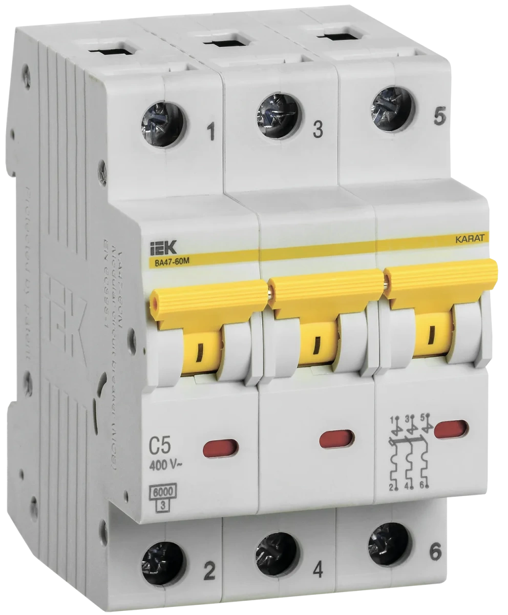 Выключатель автоматический ВА47-60M 3Р 5А 6кА С IEK (ИЭК) MVA31-3-005-C