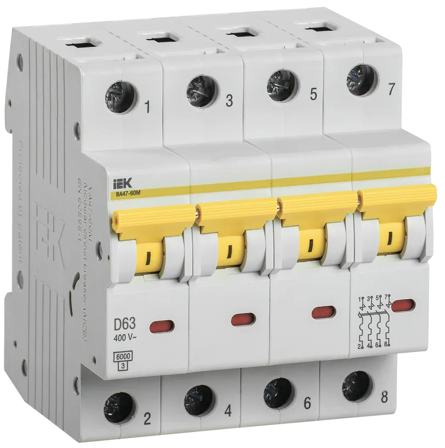 Выключатель автоматический ВА47-60M 4Р 63А 6кА D IEK (ИЭК) MVA31-4-063-D