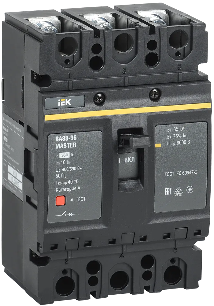 Полные технические характеристики Выключатель автоматический ВА88-35 3Р 160А 35кА MASTER IEK (ИЭК) SVA30-3-0160-02