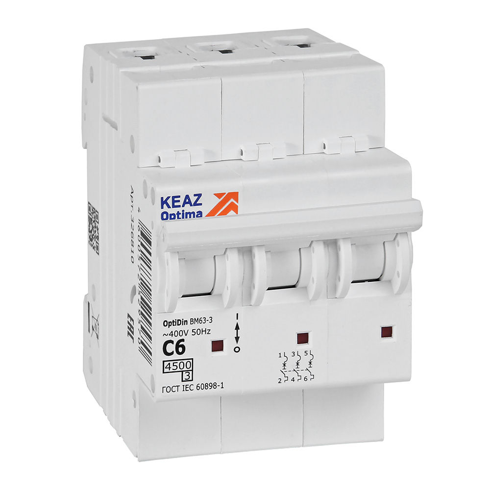 Выключатель автоматический трехполюсный 6А C 4,5кА AC OptiDin BM63-3C6-4,5-УХЛ3 КЭАЗ 326810
