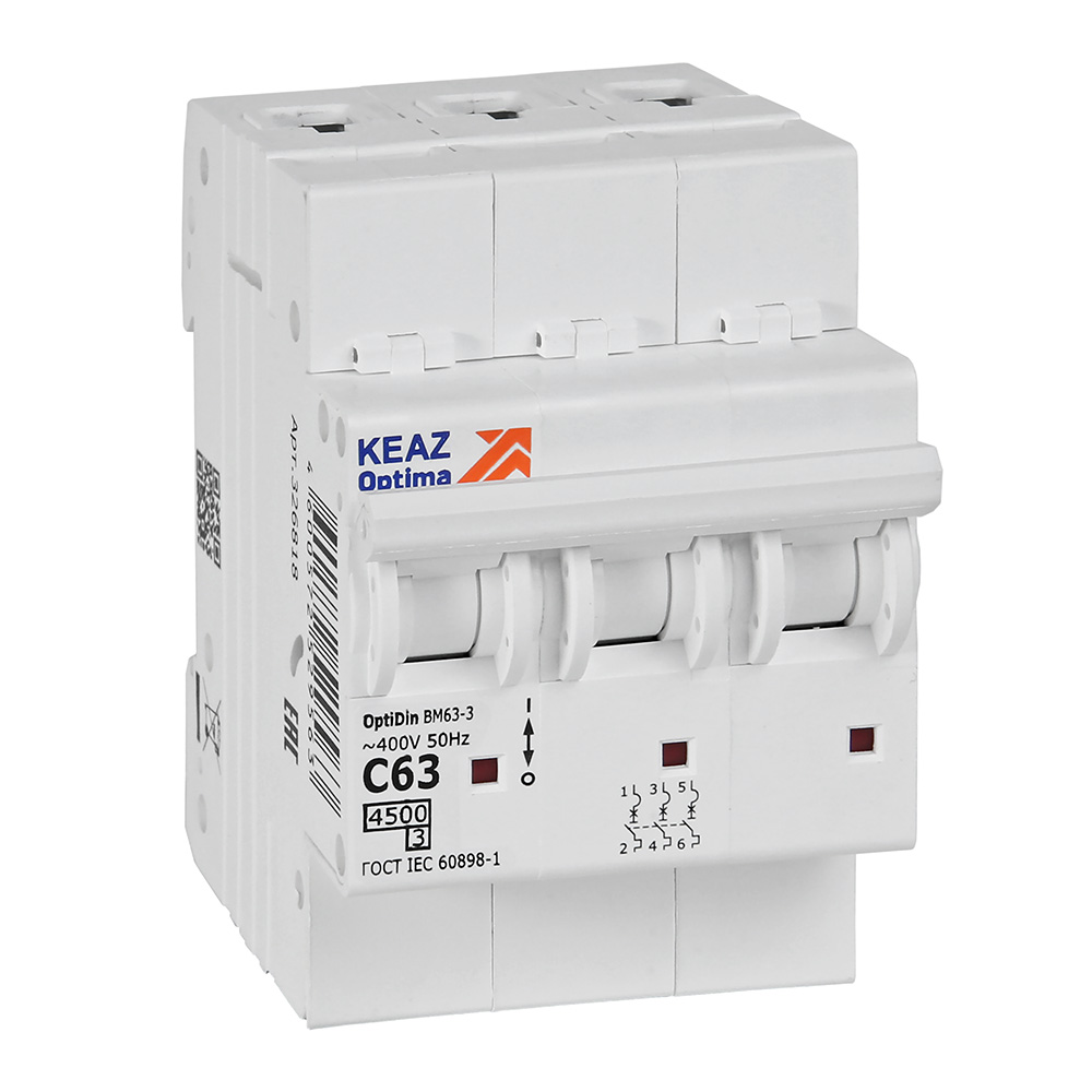 Выключатель автоматический трехполюсный 63А C 4,5кА AC OptiDin BM63-3C63-4,5-УХЛ3 КЭАЗ 326818