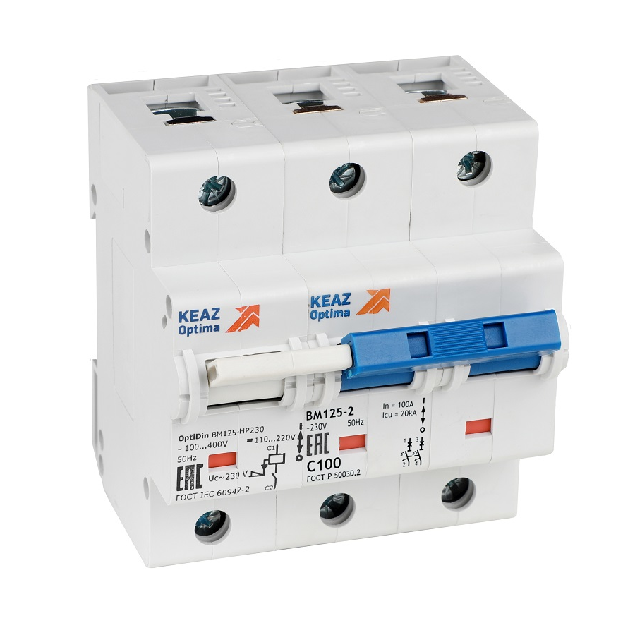 Выключатель автоматический модульный с независимым расцепителем OptiDin BM125-2C125-НР-8ln-УХЛ3 КЭАЗ 336369