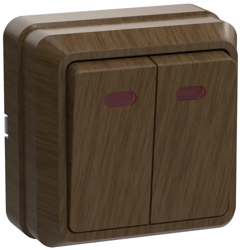 Выключатель ВС20-2-1-ОД двухклавишный с индикацией 10А Октава дуб IEK (ИЭК) EVO21-K04-10-DC