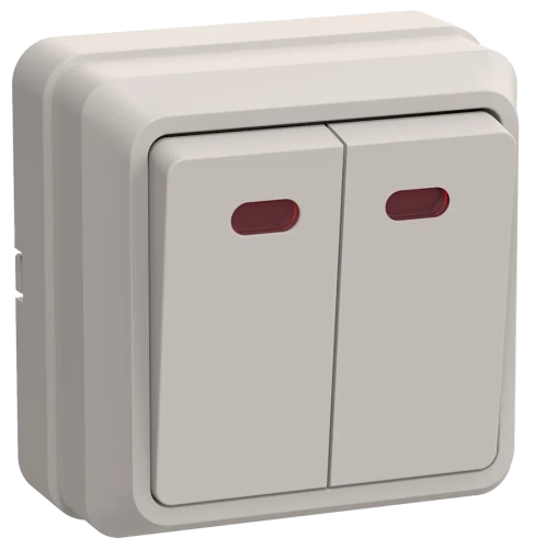 Наименование в каталоге ОКТАВА Выключатель двухклавишный наружный бежевый с индикацией 10А