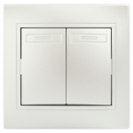 Описание Выключатель Intro Plano 1-104-06 двухклавишный применяется для подключения электрических установок к бытовой электрической сети переменного тока. Степень защиты от пыли и влаги IP20.