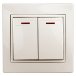 Наименование в каталоге Выключатель Intro Plano 1-105-02 двухклавишный с подсветкой, 10А-250В, IP20, СУ, слоновая кость